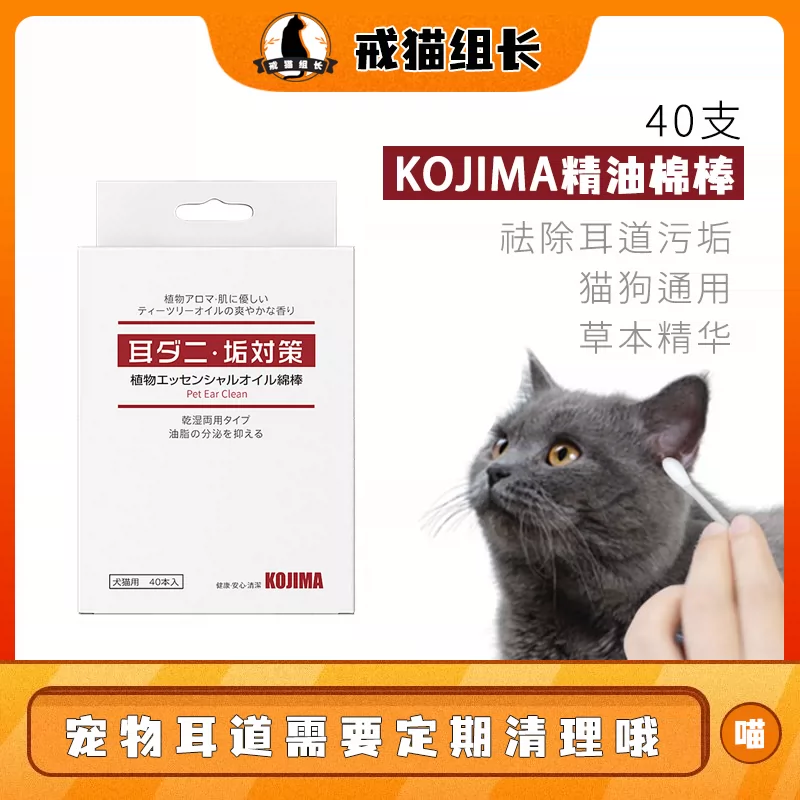 KOJIMA宠物猫狗精油棉签滴耳液40支宠物耳部清洁棉棒双头洗澡掏耳朵防耳